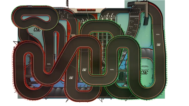 Tuesday Mega Track: Every Tuesday, we combine the Red and Blue tracks into one massive multi-level circuit. Standings for Tuesdays are recorded on a dedicated Mega Track leaderboard.